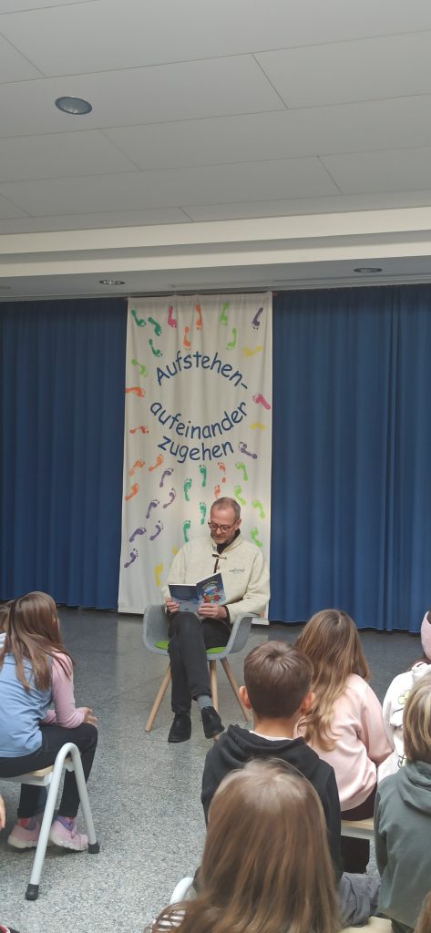 Zum bundesweiten Vorlesetag am Freitag, den 21.11.2025, kam unser zweiter Bürgermeister Christian Palm in die Aula der Grundschule Diepersdorf, um unsere Viertklässler auf die Weihnachtszeit einzustimmen. Er las aus dem lustigen Buch „Advent Advent, die Bude brennt“ vor und bekam dafür viel Applaus und eine kleine Weihnachtstasse als Dankeschön. Weil Herr Palm selbst so viel Freude beim Vorlesen hatte, haben wir direkt fürs nächste Jahr eine Fortsetzung mit ihm vereinbart.