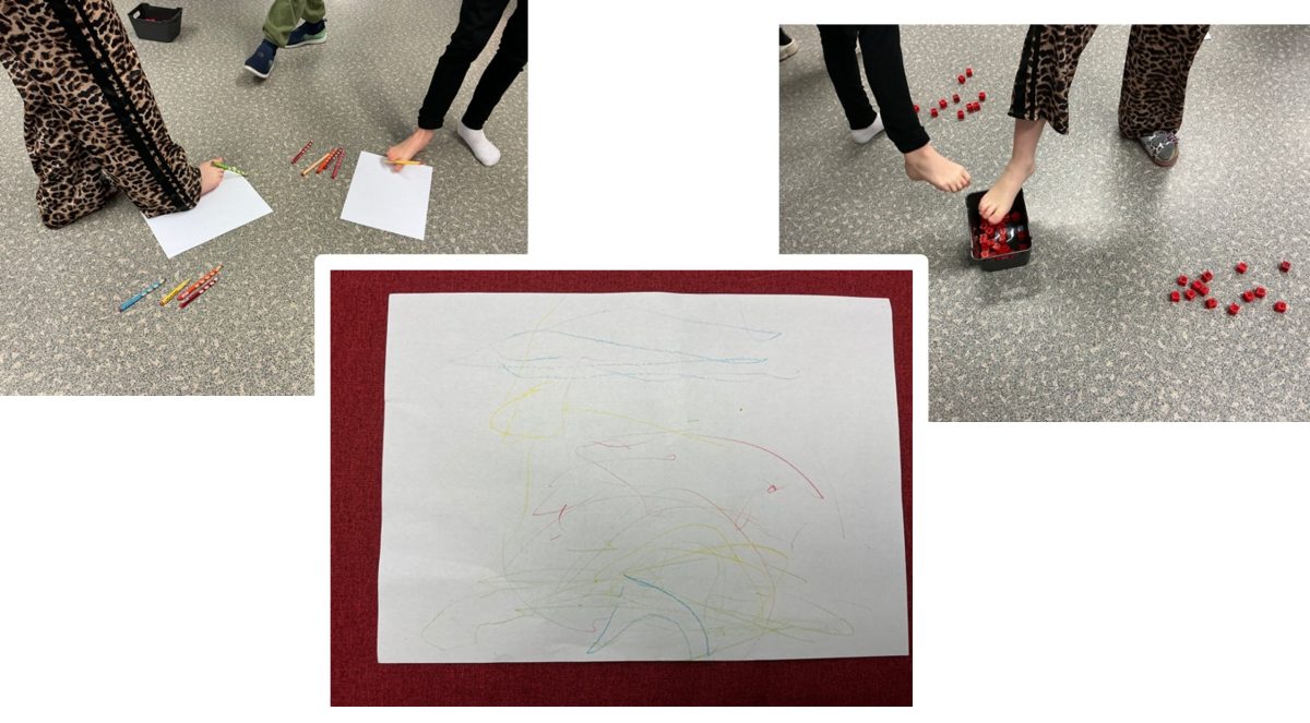 Auch praktische Erfahrungen kamen nicht zu kurz: So konnten die Kinder beispielsweise ausprobieren, wie es ist, mit den Füßen zu malen, oder Bausteine nicht mit den Händen, sondern mit den Zehen aufzuräumen – eine spannende und lustige Herausforderung, die allen viel Freude bereitet hat.